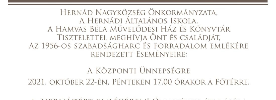 Az 1956-os forradalom és szabadságharc emlékére rendezendő ünnepségeink