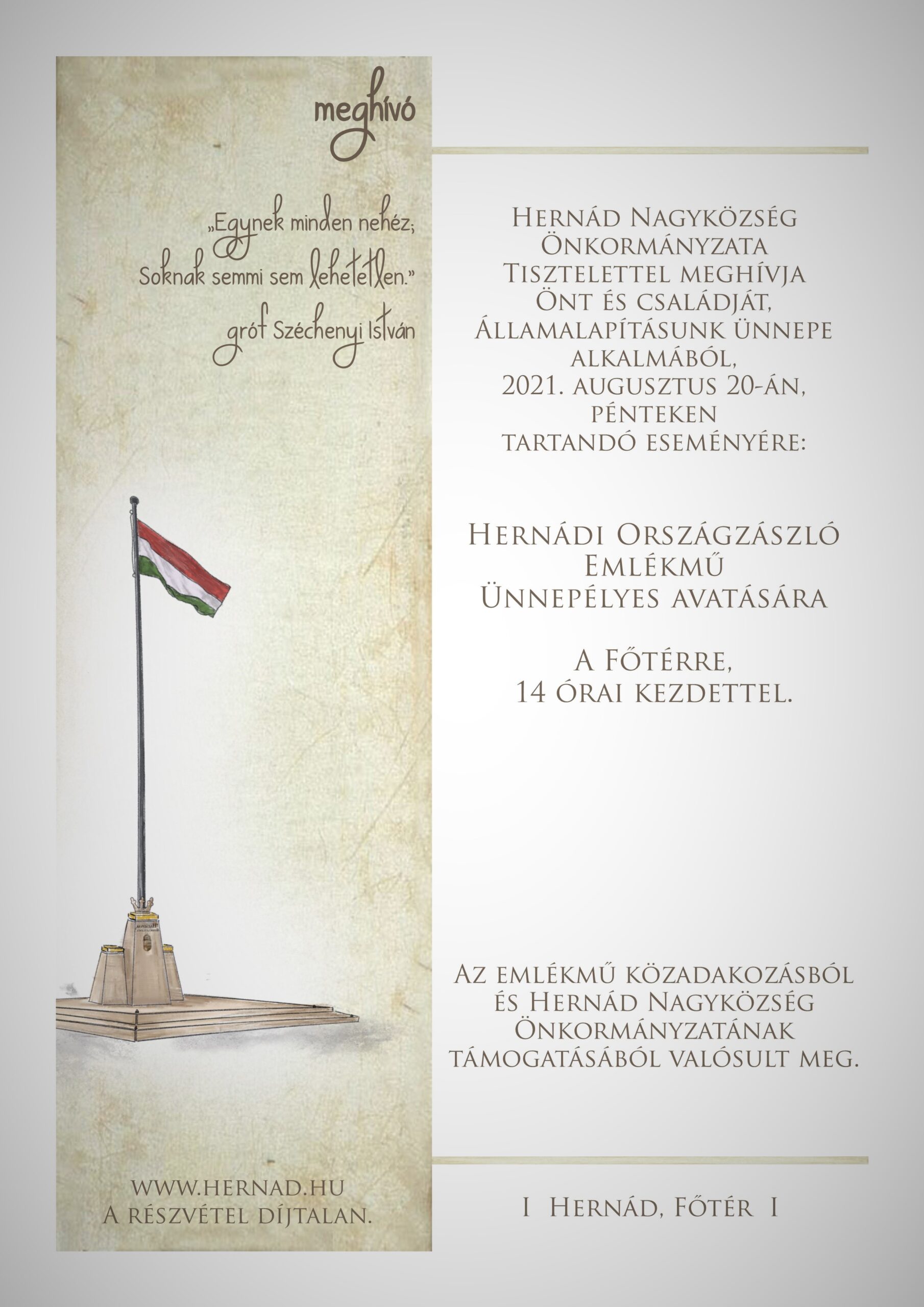 Emlékmű avatás augusztus 20-án