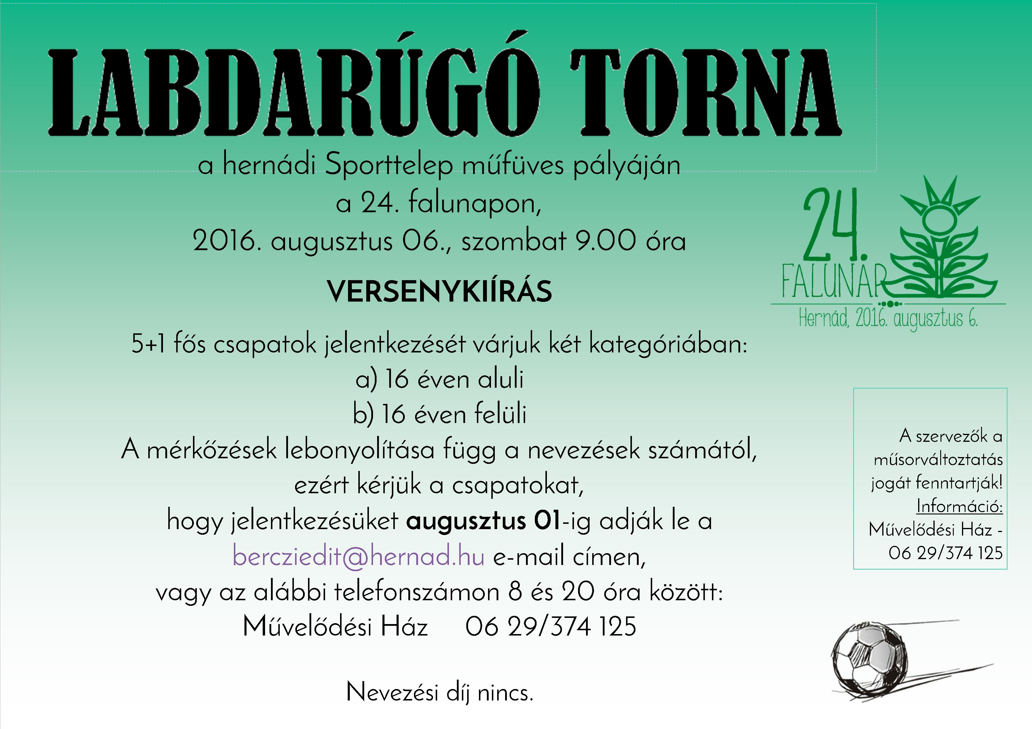 Augusztus 6-án 24. alkalommal rendezzük meg Hernádon a falunapot, amely az 1993 óta a térség egyik legszínvonalasabb fesztiváljává nőtte ki magát. Az idei program: